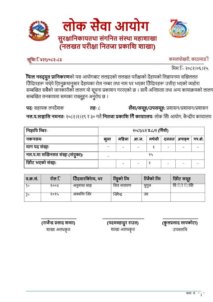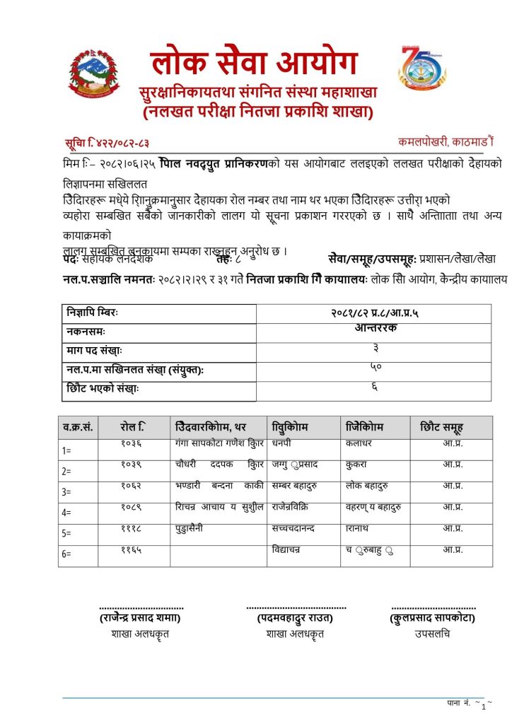 नेपाल विद्युत प्राधिकारणका विभिन्न पदको लागि लोकसेवा आयोगबाट लिएको लिखित परीक्षाको नतिजा सार्वजनिक October 11, 2025October 11, 2025/ 0 Comment/ Categories: लोकसेवा Tags: loksewa Leave a Reply Cancel replyYour email address will not be published. Required fields are marked *Comment * Name * Email * Website Save my name, email, and website in this browser for the next time I comment. Post navigation PREVIOUS Previous post: जेन जी आन्दोलन प्रभावलाई लक्षित गर्दै सरकारले सेवा प्रवाहका क्रममा जनतालाई अनावश्यक कागजात नमाग्न निर्देशन..NEXT Next post: के तपाईलाई कसैले कर छलि गरेको संका लाग्यो ? Related Post नेपाल प्रशासन सेवा, राजस्व समुह, रा.प.अनं. प्रथम श्रेणी , नायव सुब्बाको सिफास सूचनानेपाल प्रशासन सेवा, राजस्व समुह, रा.प.अनं. प्रथम श्रेणी , नायव सुब्बाको सिफास सूचना January 11, 2026January 11, 2026| 0 Comment| Read MoreRead More संघीय नायव सुव्बा वा सो सरहको विज्ञापन खुलासंघीय नायव सुव्बा वा सो सरहको विज्ञापन खुला January 14, 2026January 14, 2026| 0 Comment| Read MoreRead More